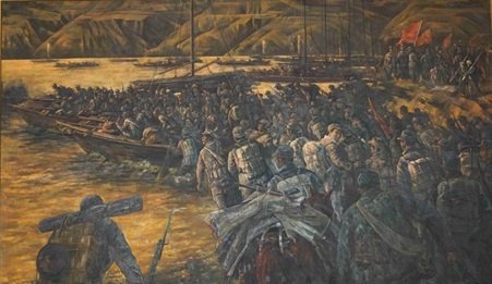 油畫《八路軍東渡黃河》 雕塑《感謝中國養(yǎng)父母碑》