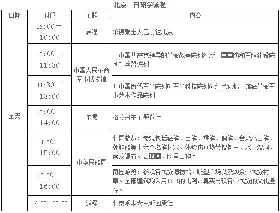 06:00-10:00:承德發(fā)車(chē)前往中國(guó)人民革命軍事博物館