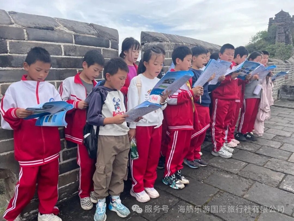 河北海航樂游之旅國際旅行社有限公司精心組織承德縣頭溝中心校、新杖子中心校、安匠中心校學生走進金山嶺長城,開展了一場集歷史探尋、文化感悟與實踐體驗于一體的研學活動。同學們踏著千年城磚,觸摸歷史印記,在行走中收獲知識,在體驗中堅定信念。