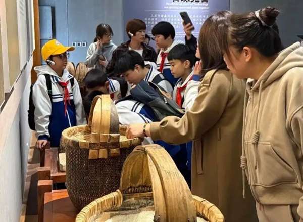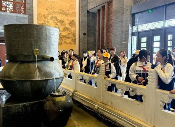 學(xué)生們?cè)诩议L(zhǎng)陪同下,饒有興致地尋找著“鎮(zhèn)館之寶”——嘉慶皇帝賞賜的《御制味余書(shū)室詩(shī)集》,并通過(guò)觀察歷代酒器演變,直觀感受到酒文化不僅是釀造技藝,更是貫穿中華文明史的生活藝術(shù)與禮制象征。